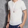 夏天超薄款亞麻半袖衫男士棉麻料短袖t恤中國風(fēng)大碼寬松男裝上衣T