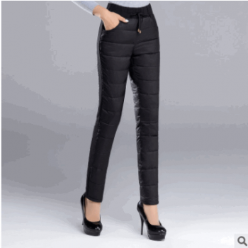 冬季羽絨褲女外穿加厚大碼高腰中老年羽絨褲女士冬媽的雙面長褲