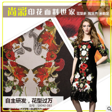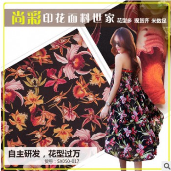 尚彩國際紡織 植物印花 數碼印花 萬種花型 面料批發 現貨 定制