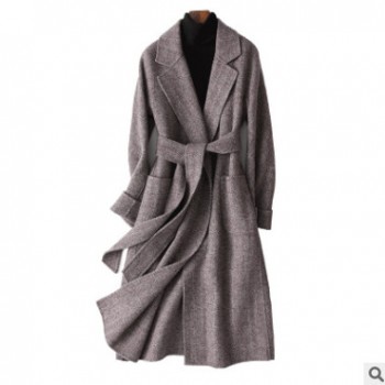 跨境爆款韓版西裝領雙面羊毛大衣女式人字紋毛呢外套廠家批發代發
