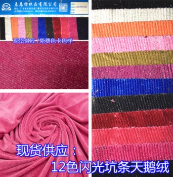 新款針織絨面料 閃亮天鵝絨坑條 銀絲絨 時尚T恤家紡服裝玩具用料