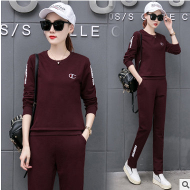 2019春秋季新款休閑套裝女韓版大碼運(yùn)動跑步服時尚寬松衛(wèi)衣兩件套