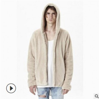 秋冬新款歐美男式絨毛衛衣純色棉開衫長袖青春流行連帽領休閑