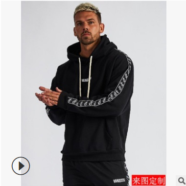 男士新款秋冬潮牌衛衣連帽衫純色街頭休閑健身外貿側織帶定制男裝