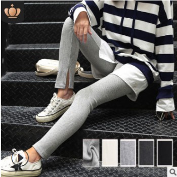 日本爆款 外套羅紋打底褲高彈2018春秋豎條外貿外穿小腳褲長款