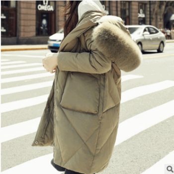 加工定制 新款連帽羽絨棉服外套女中長款棉襖子大毛領棉衣外收腰