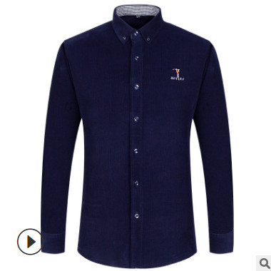 2020男士燈芯絨純棉柔軟襯衣精致繡花男士休閑襯衫中青年爸爸內襯
