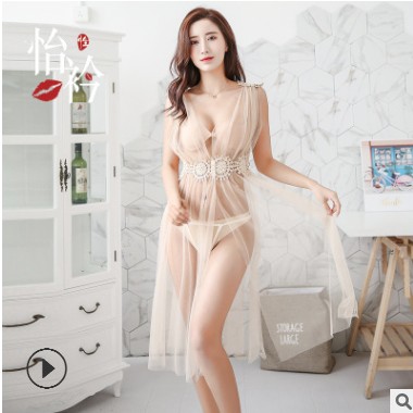 怡衿情趣內(nèi)衣雅典娜仙女長裙網(wǎng)紗透明性感高開叉露背吊帶睡衣7801