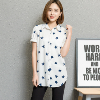 2018夏新款大碼女裝韓版胖MM加肥加大星星印花短袖中長款打底襯衫