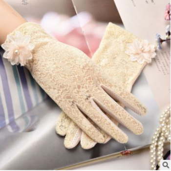 時尚小花夏季騎行防曬手套女士薄款蕾絲可觸屏短款分指手套批發