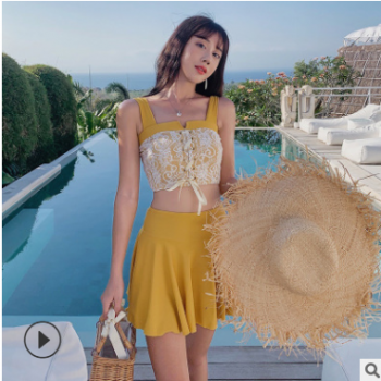 2020新款泳衣女網紅超仙保守小清新顯瘦分體高腰裙式溫泉季游泳裝