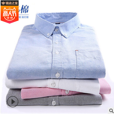 2018春秋季男士純棉長袖牛津紡襯衫男式日系修身休閑襯衣工作服男