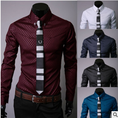外貿速賣退男士長袖襯衫韓版時尚暗格修身男裝襯衣休閑上衣批發