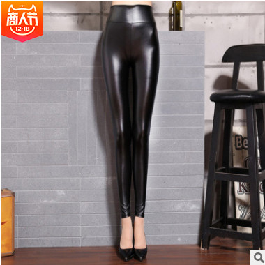 廠家直銷秋冬高腰pu皮褲外穿加絨黑色打底褲小腳褲緊身顯瘦長褲子