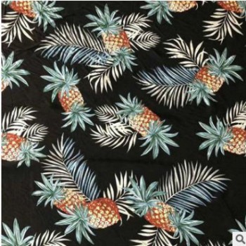 廠家批發現貨供應人棉印花菠蘿款面料女士服裝面料
