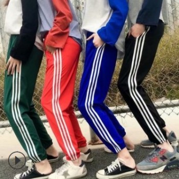 2019春夏新款韓版街頭嘻哈三條杠寬松高腰哈倫運(yùn)動(dòng)休閑束腳長(zhǎng)褲女