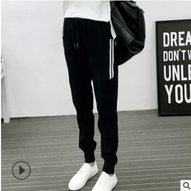 小二春秋薄款運(yùn)動(dòng)褲女小腳褲寬松bf衛(wèi)褲兩條杠長(zhǎng)褲韓版顯瘦哈倫褲