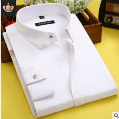 高端男式商務職業工裝修身長袖ol白襯衫彈力竹纖維暗門襟免燙襯衣