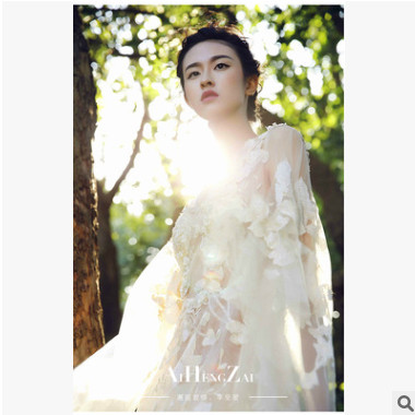 2019展會新款影樓主題服裝長袖露背拖尾森系婚紗攝影寫真拍照禮服