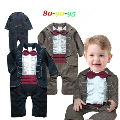 男童紳士花邊長袖連體哈衣嬰兒爬服