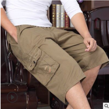 中老年夏裝新品男士沙灘褲爸爸裝純色工裝寬松休閑七分中褲肥佬褲
