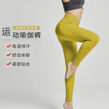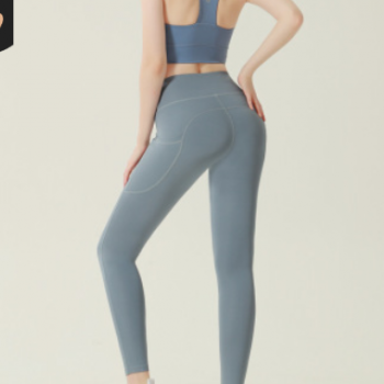 歐美新款純色裸感蜜桃臀瑜伽褲女口袋七分健身褲高腰運動緊身褲女