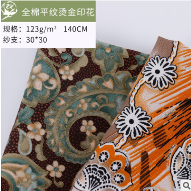 供應全棉20*20/60*60平紋印花加燙金燙銀面料 印花印金粉銀粉面料