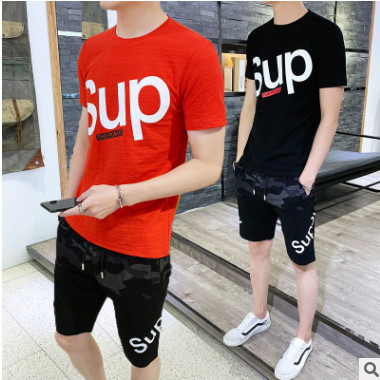 男士夏季2019新款短袖韓版潮流帥氣兩件套寬松短褲薄休閑運動套裝