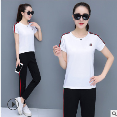 短袖休閑衛衣套裝女2019夏季新款韓版時尚跑步運動服長褲兩件套潮