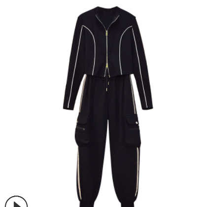 大碼女裝2021春裝新款胖mm時尚設計感減齡運動休閑開衫工裝褲套裝