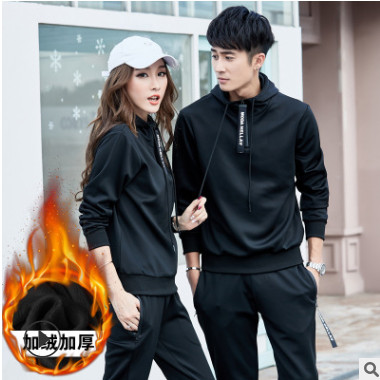 新款秋冬季新款韓版休閑運動套裝情侶加絨加厚連帽衛衣保暖兩件套