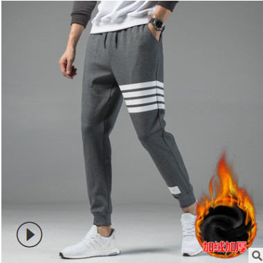 加絨運動褲男秋冬款寬松休閑衛褲潮牌褲子男韓版潮流束腳小腳針織