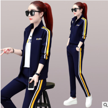 2019春秋季新款立領開衫運動套裝女三件套時尚衛衣健身休閑服顯瘦