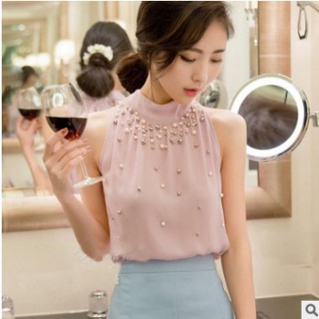 速賣通爆款女裝夏季露肩無(wú)袖掛脖上衣顯瘦小衫時(shí)尚性感雪紡衫女
