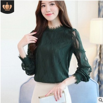 鏤空立領(lǐng)蕾絲衫2018春裝新款大碼寬松女裝套頭韓版長(zhǎng)袖打底上衣