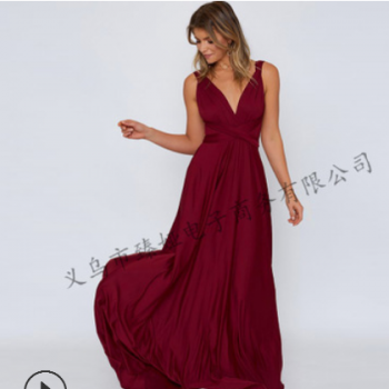 8708 亞馬遜跨境低價 歐美性感禮服優雅無袖露背多種系帶連衣長裙