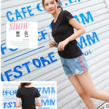 定制加工莫代爾女裝T夏季新款韓版圓領t恤短袖顯瘦百搭打底衫上衣
