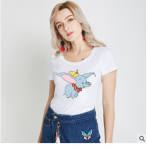 2020夏季新款小飛象圓領印花棉寬松短袖T恤女上衣潮