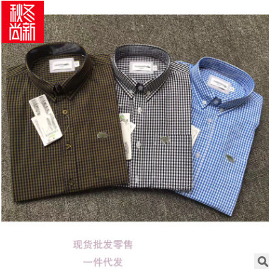 歐碼外貿長袖襯衫男裝美式休閑全棉水洗條紋批發(fā)代發(fā)馬仔繡花保羅