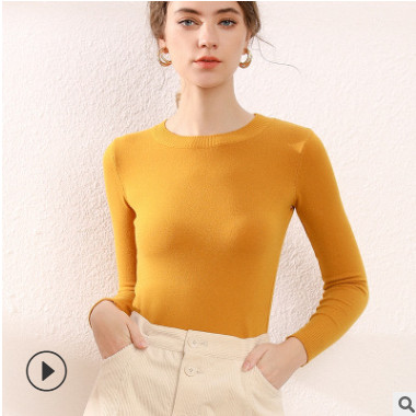 毛衣女秋冬新款薄款圓領套頭女士針織打底衫糖果色短款內搭毛衫