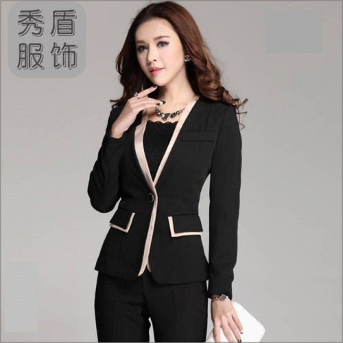 供應(yīng)秋冬新款西裝套裝 女職業(yè)裝OL時(shí)尚氣質(zhì)正裝 黑金拼接 大氣優(yōu)雅