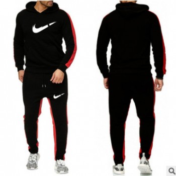 跨境2019秋冬新款時尚印花休閑衛衣男拼色棉質連帽衛衣男潮