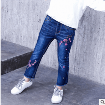 女童牛仔褲秋冬新款童裝女童牛仔褲中大童褲刺繡兒童長褲一件代發