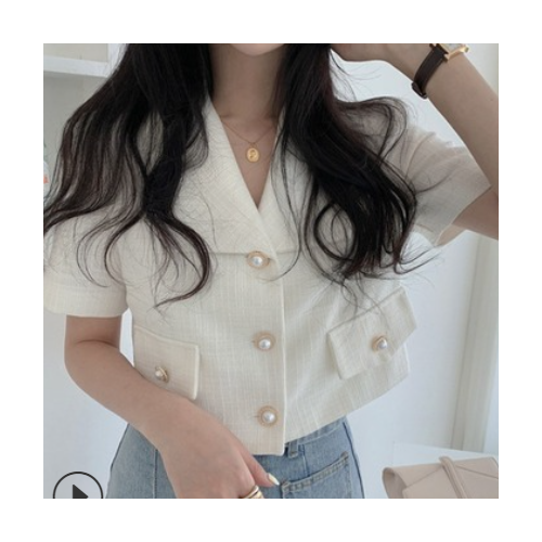 白色香香風復古甜美氣質炸街翻領短袖西裝短外套女夏季小個子上衣