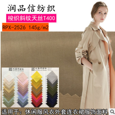 現(xiàn)貨批發(fā)梭織斜紋天絲T400服裝布料休閑服風衣外套連衣裙服飾面料