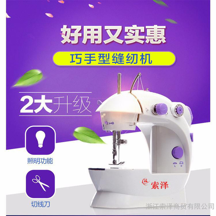 ** 索澤202迷你縫紉機 微型電動便攜式家用帶燈帶刀 多功能衣車