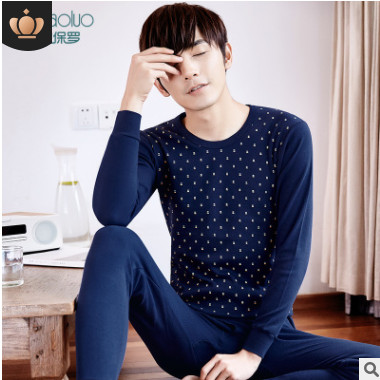 2018秋冬男士印花款純棉薄款保暖內(nèi)衣男士保暖套裝線衣線褲批發(fā)