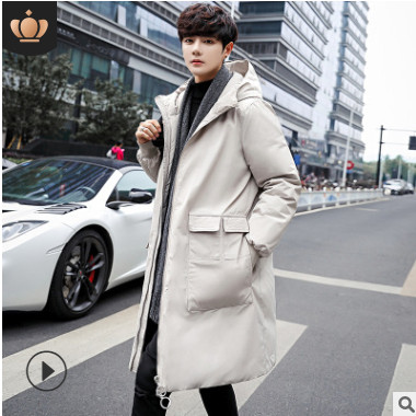 2019冬季新款男士羽絨服中長款時尚韓版潮流帥氣加厚連帽冬裝外套