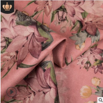 現(xiàn)貨供應(yīng)滌綸面料服裝面料印花麂皮絨 時裝服裝面料批發(fā)