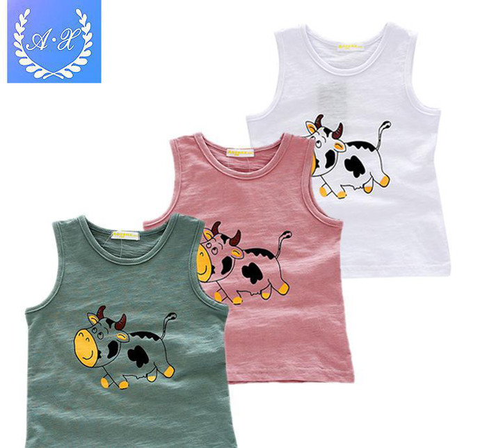 直銷夏款竹節棉**新款印奶牛兒童背心時尚男童女童潮打底衫